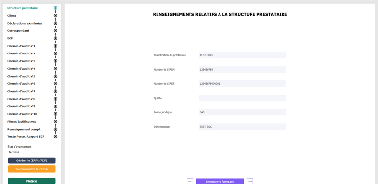 La génération du CERFA 3030-SD s'opère depuis le formulaire ECF inclus dans le process de NotaQo