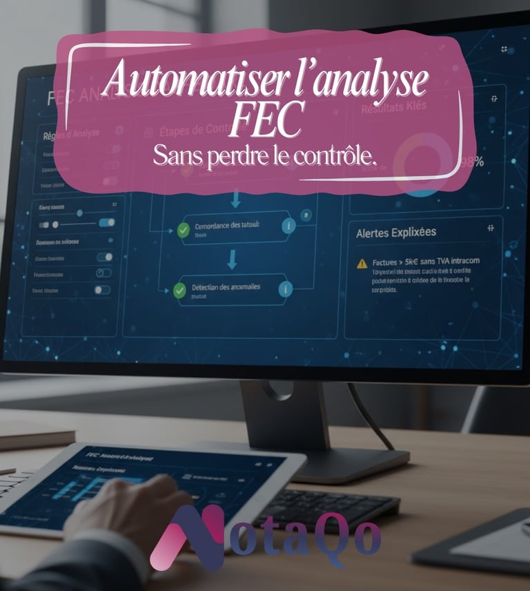 FEC : visualisez et analysez 📊 votre fichier des écritures comptables. Outil de contrôle, conformité fiscale, test compta ✅ — NotaQo, solution pour entreprises et experts-comptables.